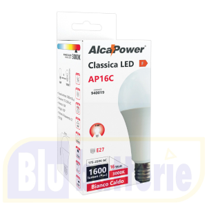 940019, Lampada Classica LED 175-250V 16W 1600lm 3000K E27 Bianco Caldo Base E27. Marca: Alcapower940019, Lampada Classica LED 175-250V 16W 1600lm 3000K E27 Bianco Caldo Base E27. Marca: Alcapower